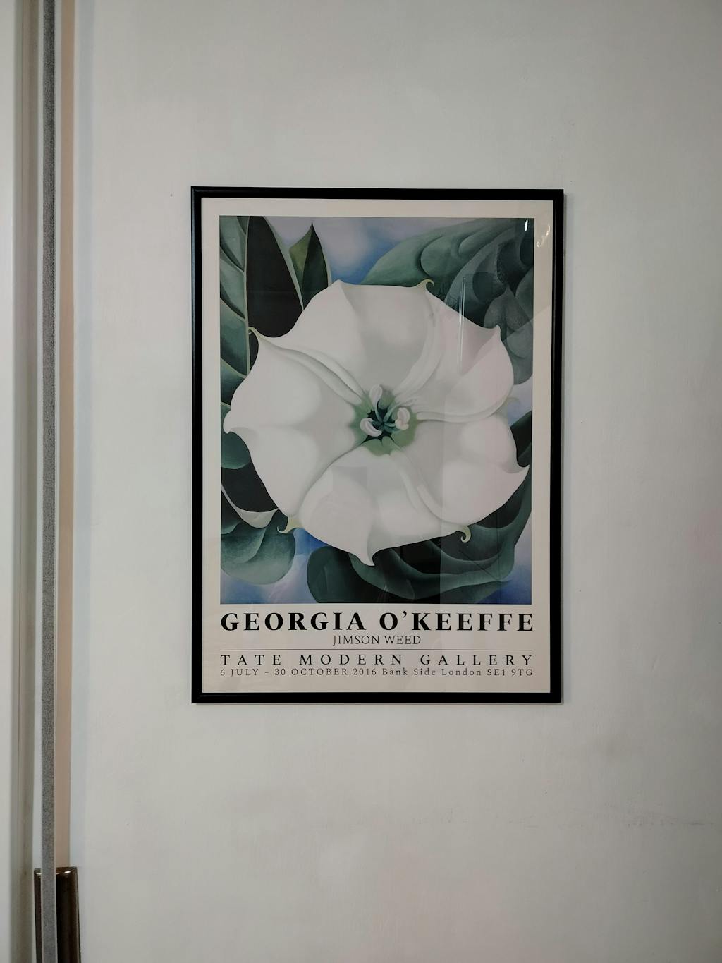 Geformte Formen und sanfte Farbverläufe verschmelzen harmonisch in diesem Jimson Weed – Georgia O'Keeffe Poster, inspiriert von der Ausstellung in der Tate Modern Gallery. Zarte weiße Blütenblätter vor üppigen grünen Blättern verleihen jedem Raum zeitlose Eleganz und Ruhe. Ideal für moderne Innenräume, verleiht dieses raffinierte Kunstwerk einen Hauch von Kultur und feiert gleichzeitig täglich die stille Schönheit der Natur.
